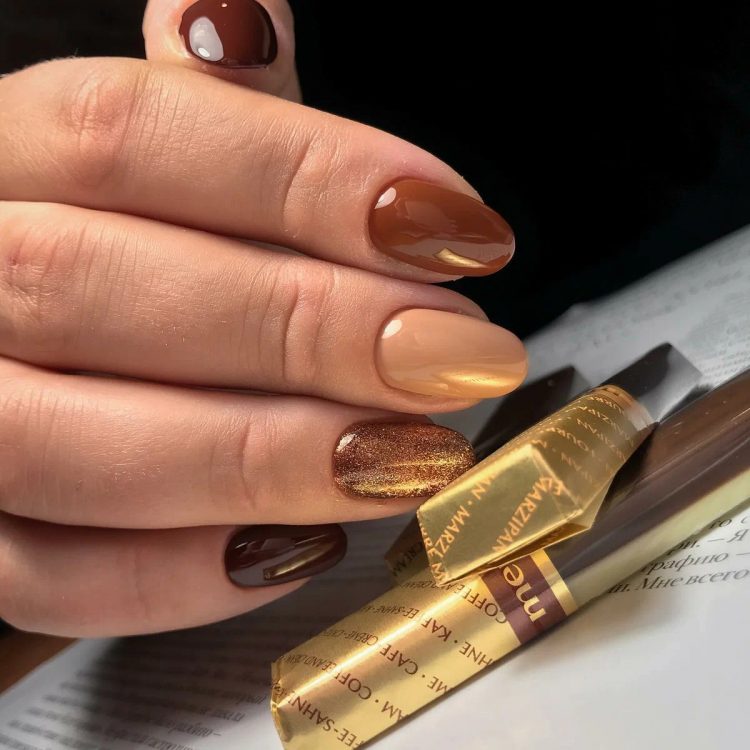 Теплий і приємний карамельний відтінок жінки використовують незалежно від настрою та пори року. Його можна комбінувати з іншими відтінками коричневого кольору або додавати декор, блискітки.