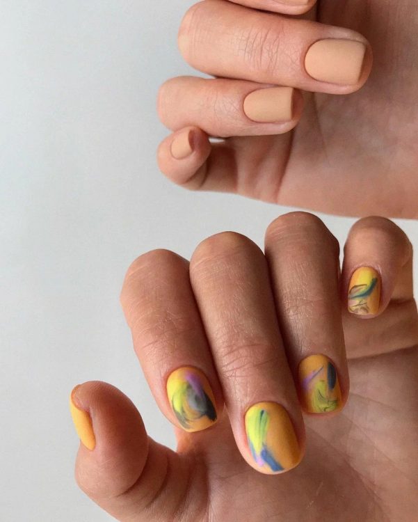 Всім шанувальникам цієї форми нігтів радимо придивитися до актуального дизайну bubble gloss. Здалеку на нігтях навряд чи можна буде розрізнити покриття, а якщо придивитися ближче – вони будуть гарно, але делікатно переливатися. Втім, звичайне нюдове покриття теж ніхто не скасовував, правда цього літа майстри манікюру рекомендують носити його в міксі з дуже яскравим дизайном. Як? Тут все досить просто: вам просто потрібно покрити нігті на одній руці максимально натуральним відтінком, а на другу – нанести будь-який яскравий дизайн, який припаде вам до смаку. Так, на перший погляд це здасться дивним, але наймодніший манікюр сезону виглядає саме так.
