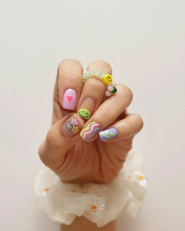 Оскільки на носі літо, ми все ж таки радимо вам відставити нюд до кращих часів і поекспериментувати з кольором. Можна зробити однотонне покриття у яскравому відтінку, можна додати нехитрий дизайн у вигляді крапок, смужок або розводів певного кольору. Не втрачає своєї актуальності і кольоровий френч – на квадратних нігтях він виглядатиме анітрохи не гірше, ніж на формі “мигдаль”. Якщо хочеться чогось зовсім літнього, намалюйте на нігтях милі картинки – смайлики, серця та квіточки. Одним словом – ні в чому собі не відмовляйте. А більше натхнення для манікюру для форми нігтів, квадрат шукайте нижче.