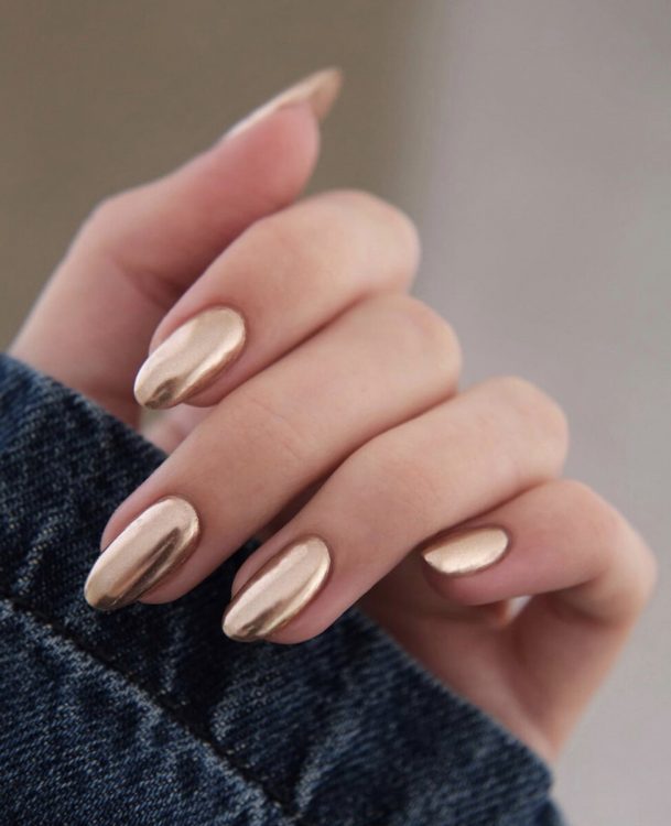 Однотонний манікюр – значить нудний. Достатньо лише вибрати лак з блискітками або прикрасити покриття сяючим втиранням. Актуальними будуть як варіанти з металевим відливом, так і “глазуровані”.