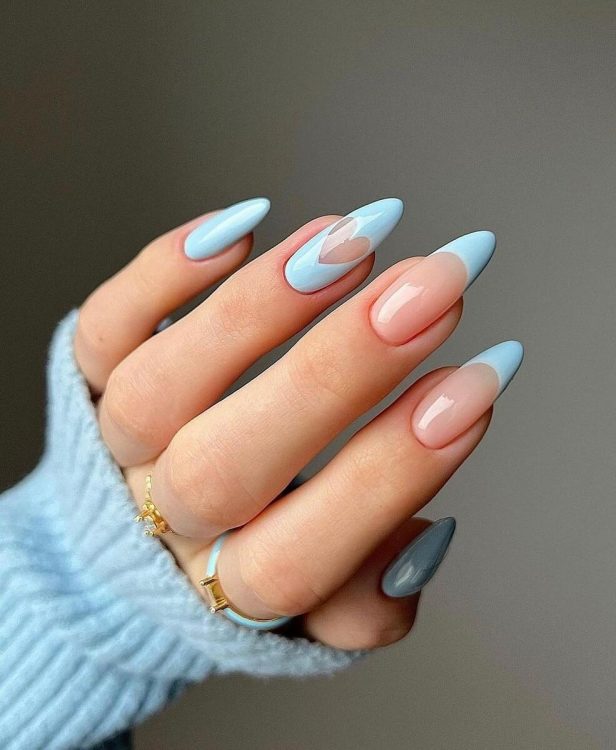 Ще один варіант – зробити френч лише на кількох пальцях. А решту можна залишити однотонними або намалювати на них якийсь малюнок.
