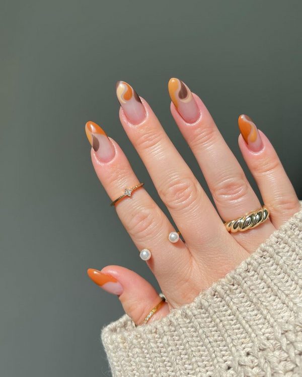 Любителькам мінімалізму точно підійде нейл-арт із тонкими смужками або геометричний манікюр для овальних нігтів.