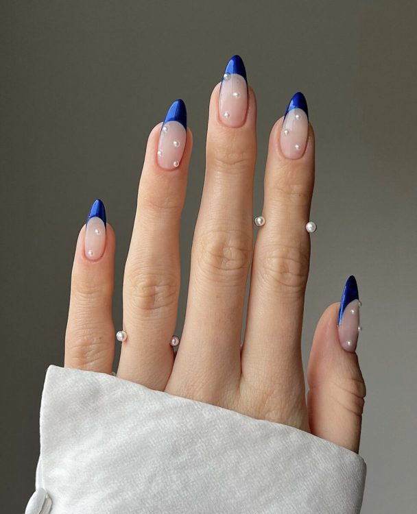 Манікюр для овальних нігтів із френчем, зроблений білим лаком, точно встиг набриднути багатьом жінкам. А ось кольорові варіанти цього дизайну виглядають значно свіжішими. Можна сміливо зробити лінію на вільному краї нігтя кольоровою і, навіть, блискучою.