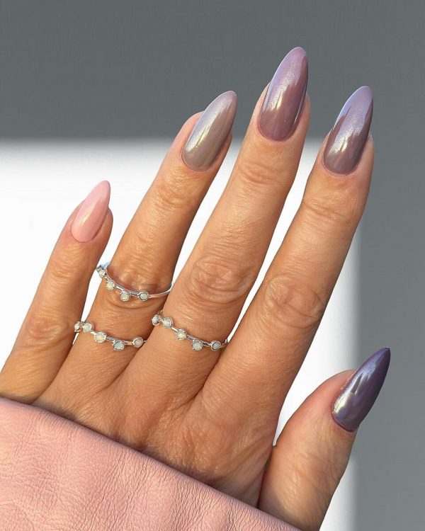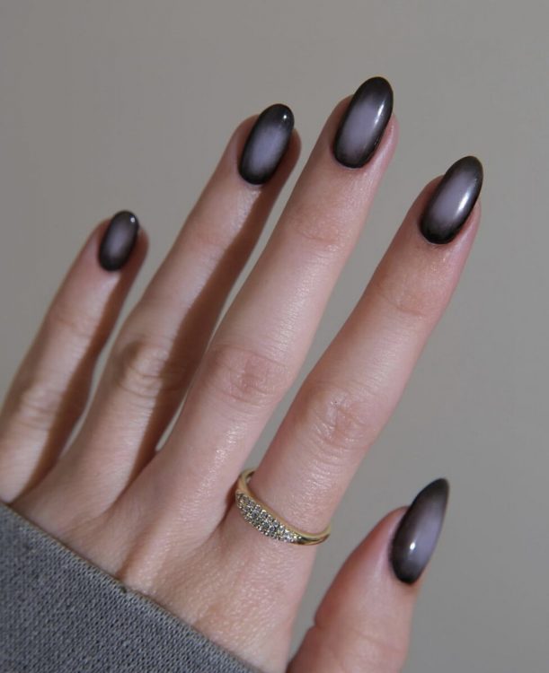Якщо однотонне покриття здається вам занадто банальним, але відходити далеко від класичних рішень не хочеться, можна зробити градієнтний манікюр для овальних нігтів або омбре.
