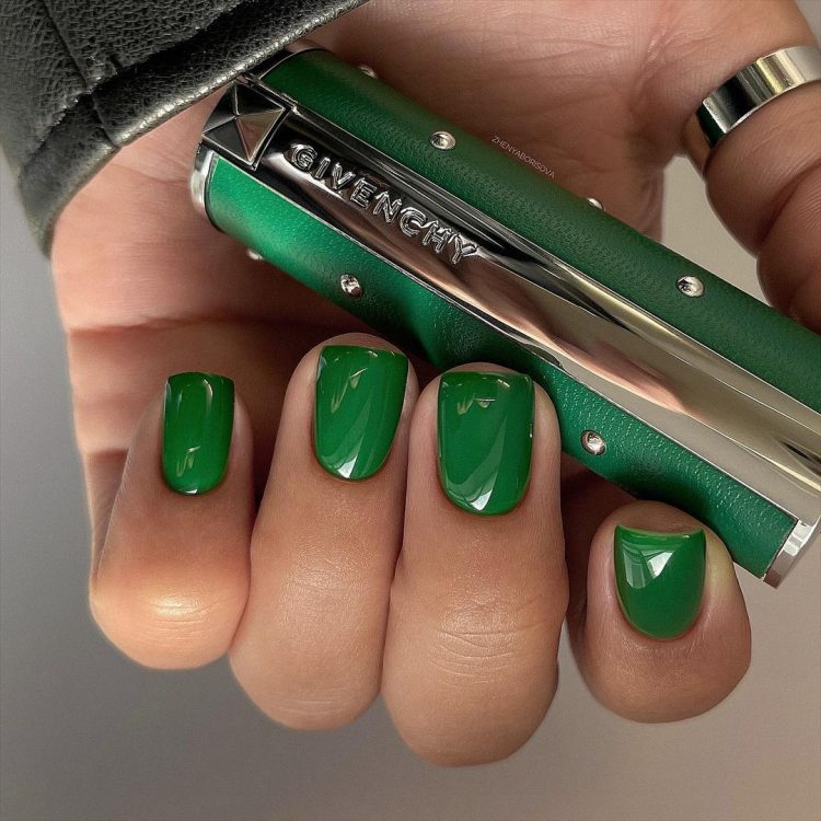 Це оформлення завоювало серця багатьох жінок. Замість традиційного втирання потрібне перламутрове, і зелений колір заграє по-новому.