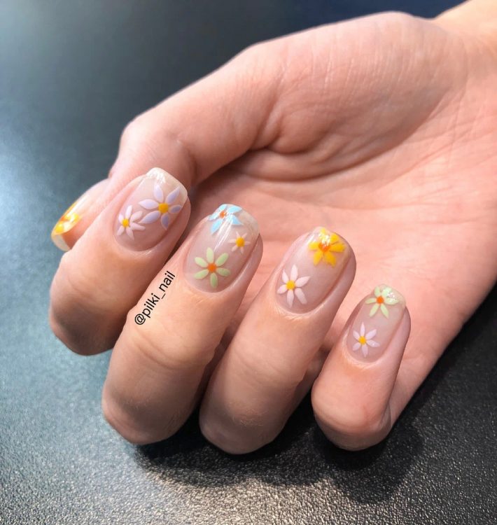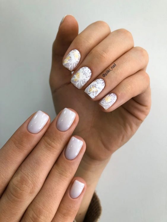 Рекомендуємо такий ніжний манікюр на весілля, дівич-вечір або ж для відвідування арт-галереї. Обирайте спідниці, квіткові принти або сукні пастельних тонів, щоб доповнити цей мрійливий нейл-арт.