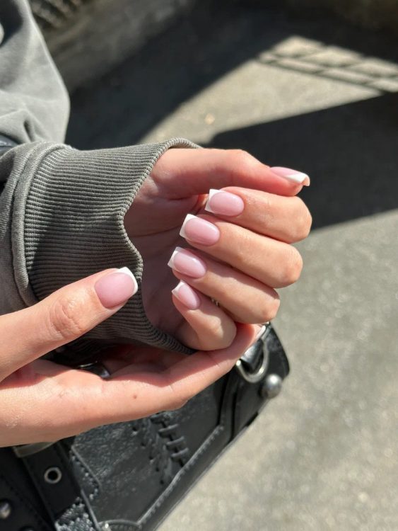 Елегантний французький манікюр для впевнених у собі людей, які цінують витончений вигляд. Така ніжна ідея на короткі нігті, як маленька чорна сукня, є символом вічного стилю.