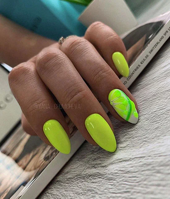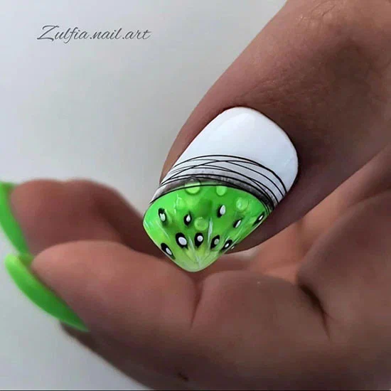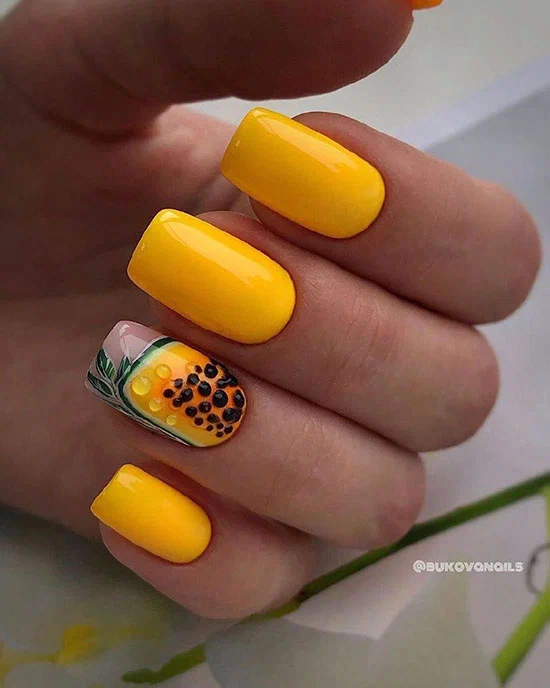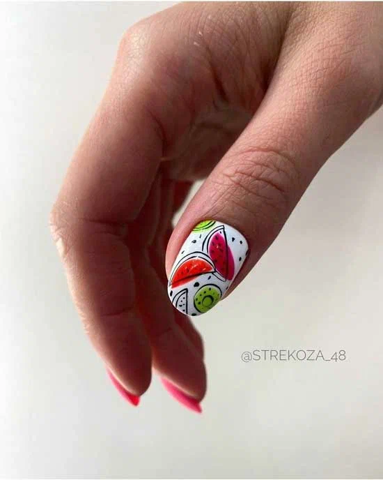 На нігтях можна зобразити фрукти чи ягоди, щоб створити ефектний та неповторний дизайн.