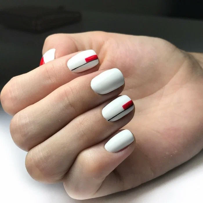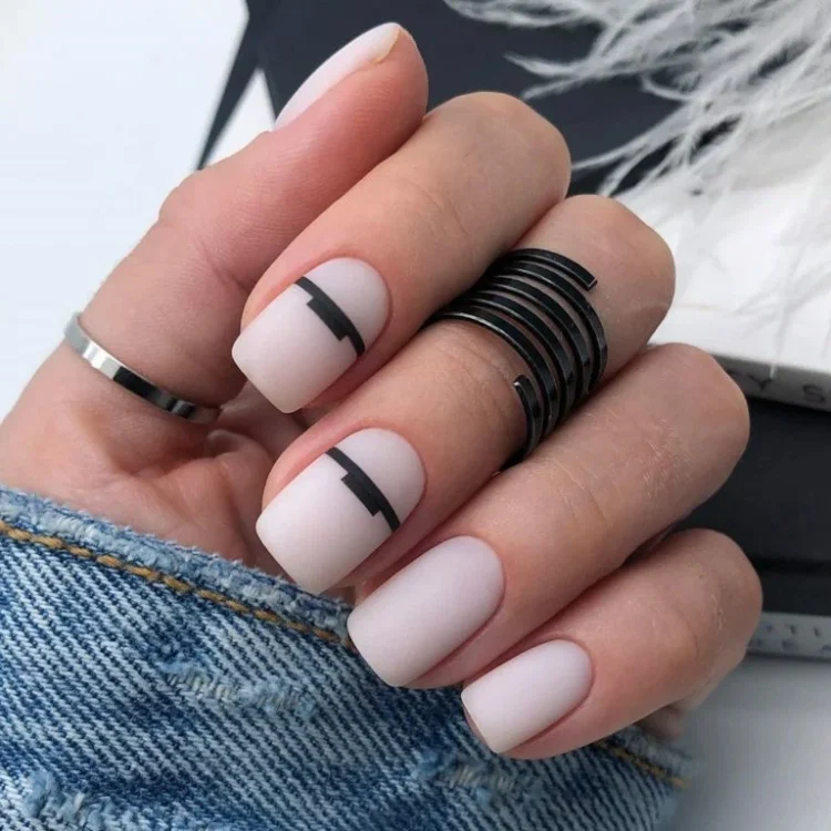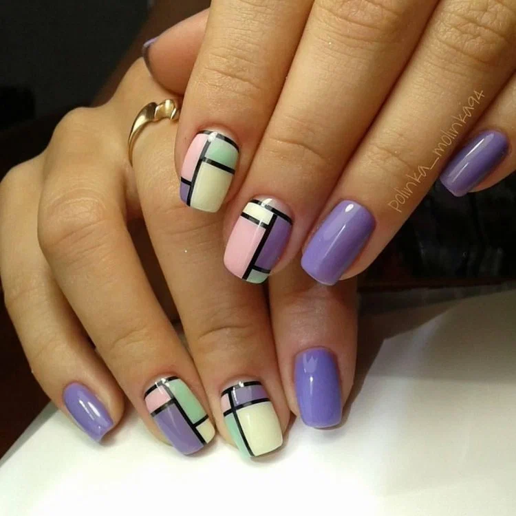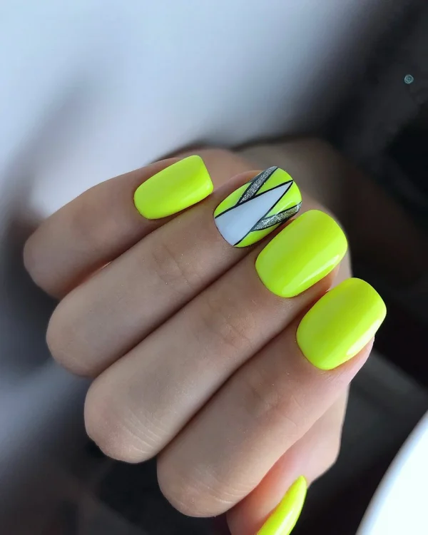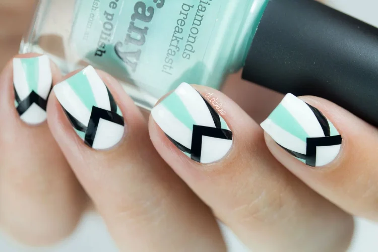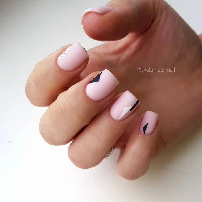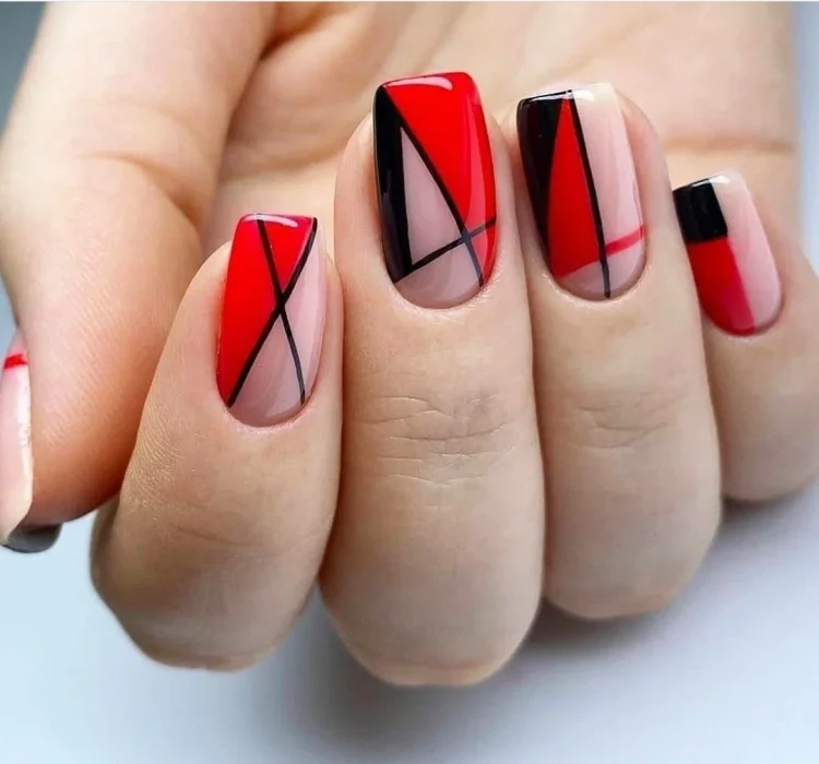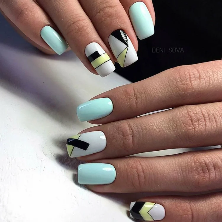 Геометричні форми та лінії також можуть бути використані у літньому манікюрі. Наприклад, можна намалювати трикутники, квадрати, кола чи ромби на нігтях.