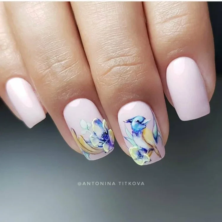 Малюнки на нігтях можуть бути чудовим вибором для літнього манікюру. Наприклад, можна зобразити на нігтях метеликів, птахів чи тварин.