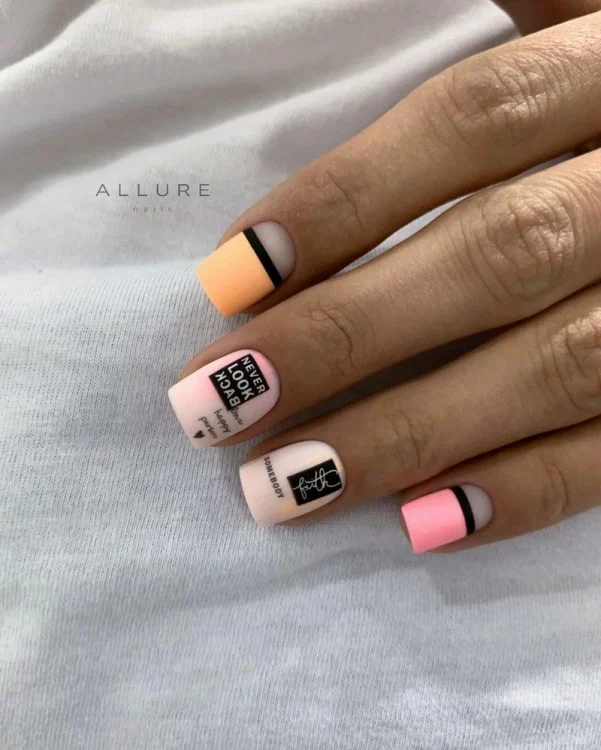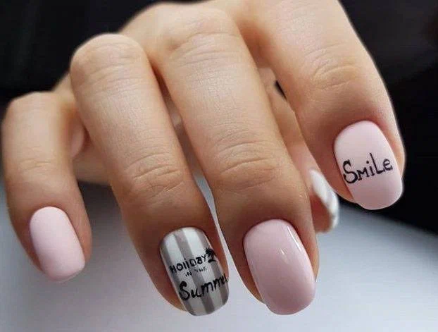 Написи на нігтях можуть бути виконані тонкими лініями, що надає дизайну легкості. Також можна використовувати різні шрифти для створення унікального дизайну.