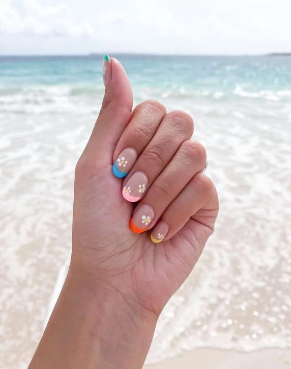 Яскраві кольори – це завжди гарна ідея, якщо ви хочете зробити пляжний манікюр, а квіткові акценти ідеально підходять для літніх нігтів.
