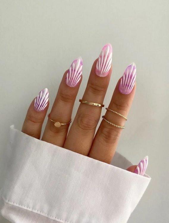 Якщо ви хочете зробити манікюр, натхненний океаном, який виділятиме вас з натовпу, цей чудовий нейл-арт з черепашками стане ідеальним вибором. Дизайн простий, але оригінальний. В якості фону можна використовувати як рожевий, так і будь-який інший колір – синій, зелений, фіолетовий.
