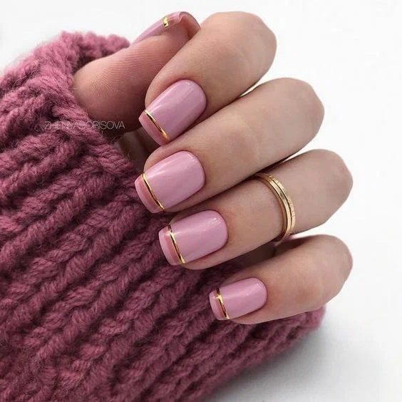 Вся різноманітна палітра рожевих гель-лаків буде на піку популярності. Щоб рожеве покриття виглядало привабливіше, його достатньо доповнити золотими чи срібними смугами.