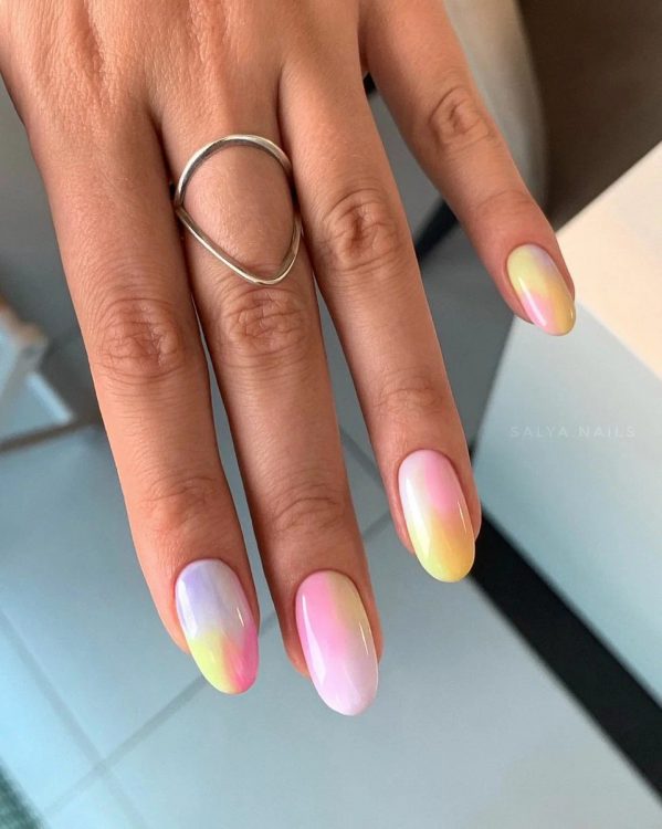 Витончений та стильний варіант як для мінімалістів, так і для тих, хто любить щось яскравіше. Якщо ви належите до першої категорії, вибирайте суміжні відтінки з пастельної палітри кольорів. Якщо вам подобається яскравий манікюр, зверніть увагу на поєднання соковитих морквяних та салатових відтінків.