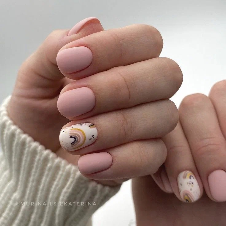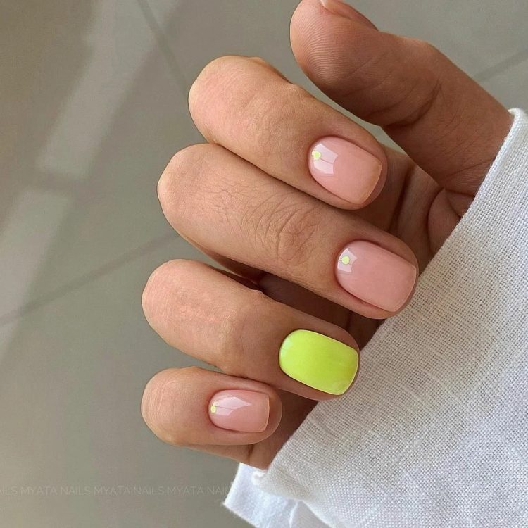 Максимально природний манікюр або “манікюр без манікюру” можна пожвавити за допомогою одиничного вкраплення або оформлення однієї нігтьової пластини в іншому кольорі.