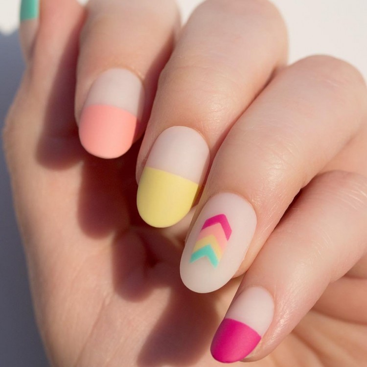 Колор-блок у моді не лише в одязі, а й у манікюрі: ваша форма нігтя ідеальна для гри з пастельними відтінками! Якщо вам до душі строгіші варіанти дизайну нігтів, спробуйте двоколірне покриття, про оптимальні поєднання можете почитати у цій статті.