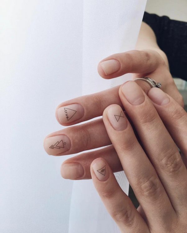 Не менш стильно та ефектно виглядає той дизайн нігтів, у якому тісно переплітається мінімалізм та геометричні фігури.