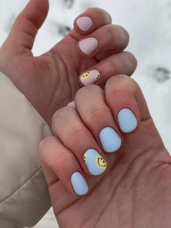 Усміхнені смайли на нігтьових пластинах – цей дизайн полюбили за простоту і невибагливість, яка межує з чудовим почуттям гумору.