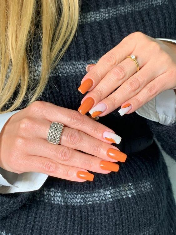 Урізноманітнити манікюр у теплу пору року допоможе вся насичена червона кольорова гама, починаючи від теплого коралового і закінчуючи червоно-коричневим.
