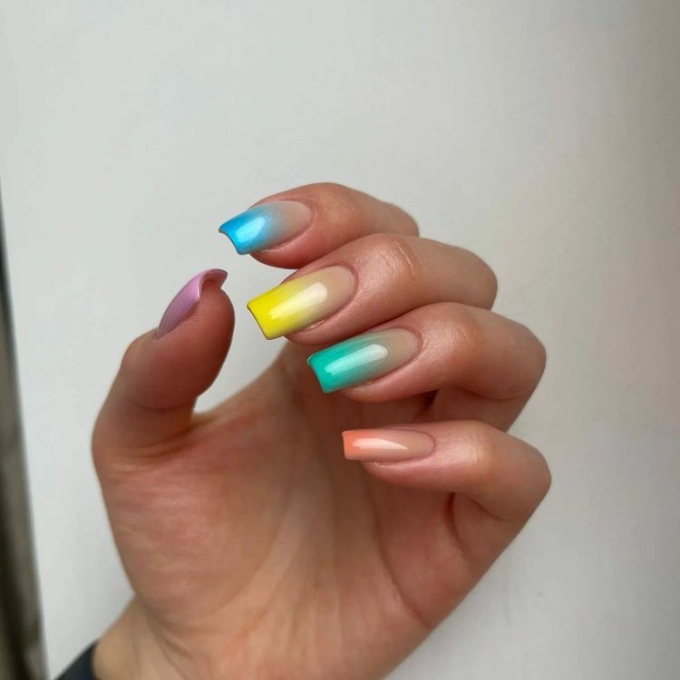Плавний перехід із кольору в колір або градієнтний манікюр незмінно затребуваний у нейл-індустрії. Навесні можна вибрати дизайн одразу з декількома яскравими відтінками лаку.