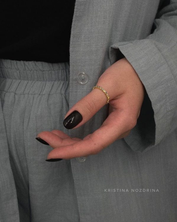 Зазвичай навесні жінки рідко вибирають чорний манікюр. Але, якщо у вас особливий вишуканий смак, який не підкоряється модним трендам, можна покрити нігті в темний тон, наприклад, в чорний, темно-коричневий або бордовий.