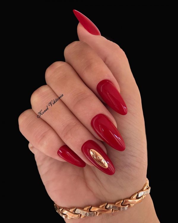 Червоний гель-лак ніколи не вийде з моди – це класика, якій немає рівних. Найпростіший варіант для стильного образу – це однотонний червоний манікюр, але за бажання ви можете його розбавити цікавим акцентом на одному пальчику.