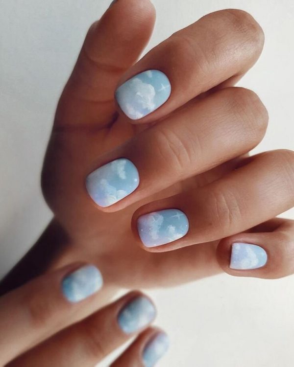Подивіться на небо. Хіба є щось чудовіше, ніж пухнасті білі хмаринки на блакитному тлі? Чому б не відтворити цю чудову картину на нігтях?