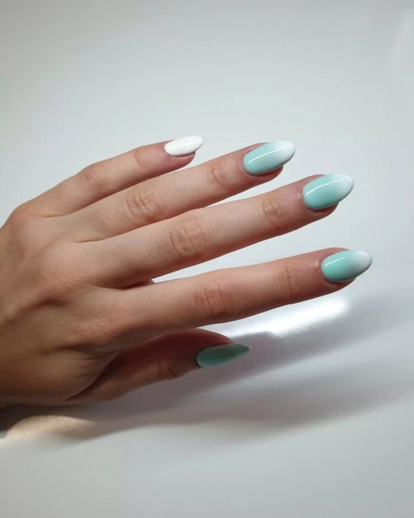 Якщо вам подобається манікюр у стилі омбре, обов’язково спробуйте використати для його створення гарне поєднання білого та блакитного кольору.