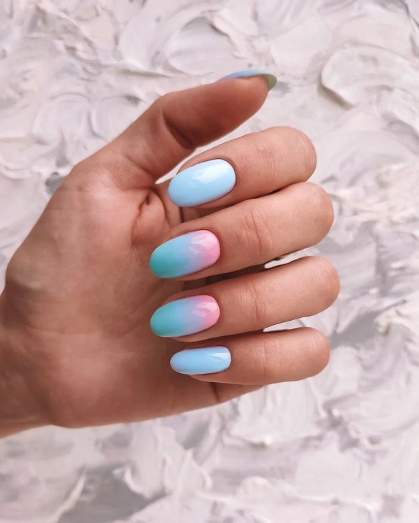 У нейл-індустрії блакитний колір найчастіше асоціюється з весною та літом, з відпусткою та чистим небом. Вважається, що люди, які вибирають відтінки блакитного кольору, люблять стабільність, вони рішучі, але люблять відірватися від реальності і помріяти. Блакитний колір чудово виглядає на нігтях будь-якого кольору та форми, його вибирають юні панянки та жінки у віці.