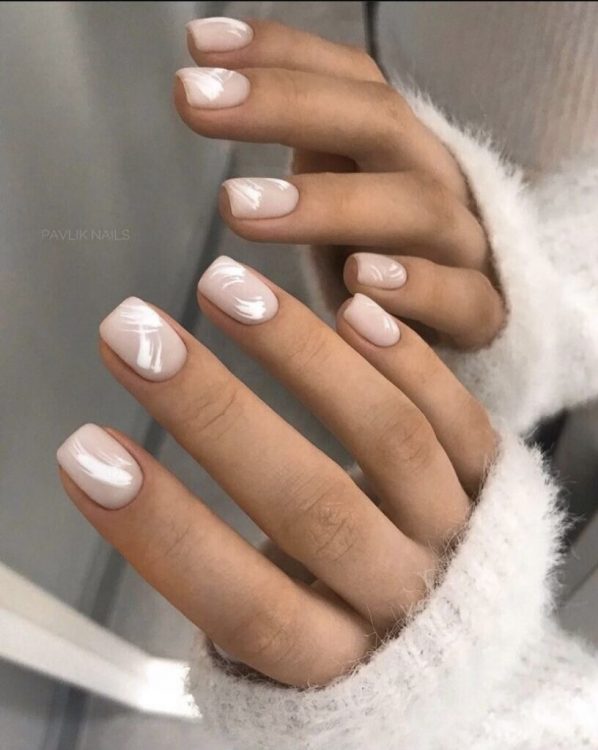 Цікавим дизайном нігтів у мінімалістичному стилі можна назвати варіант із штрихами та мазками, виконаних у максимально нейтральних відтінках.