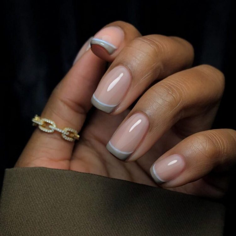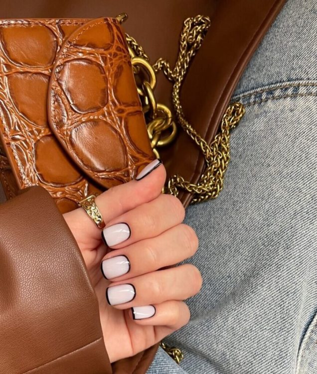 Чудовим повсякденним вибором буде бежевий дизайн нігтів із окантовкою нігтьової платини лаком чорного кольору – такий варіант виглядає свіжо та незбито.