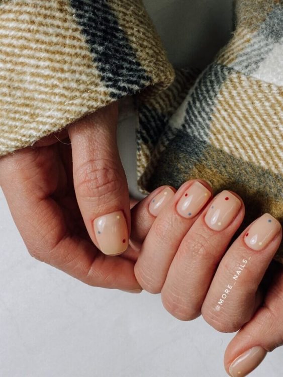 У теплий сезон, коли багатьом з нас хочеться яскравих фарб та вражень, можна вибрати манікюр у природних тонах з мінімальним додаванням улюбленого яскравого кольору, який може розташовуватись у різних місцях нігтьової пластини.