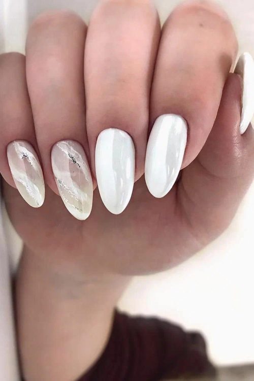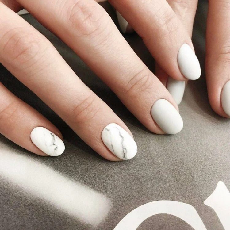 Такий варіант ідеально імітує поверхню натурального каменю, що виглядатиме особливо модно у 2022 році. Виглядає такий манікюр, досить багато і розкішно, тому краще поєднувати його з однотонними, м’якими покриттями нюду, молочного, бежевого або навіть з однотонною базою без покриття. Виглядати буде дуже мінімалістично і непомітно, причому дуже доречно і без надмірностей.
