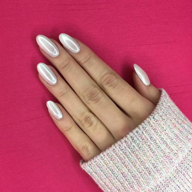 Нюдові нігті, виконані у формі мигдалю, мабуть, це найтоповий варіант на сьогодні. Такі нігті, не тільки відмінно поєднуються з будь-яким одягом, а також не будуть впадати в очі, на відміну від яскравих варіантів. Пастельний відтінок виглядає просто чудово, він додає зібраного і стильного вигляду. Мигдаль досить практичний у носінні і м’які краї дозволять носити такі нігті довгий час. Дану форму ви можете носити так само в короткому варіанті, що виглядає досить ніжно та стримано.