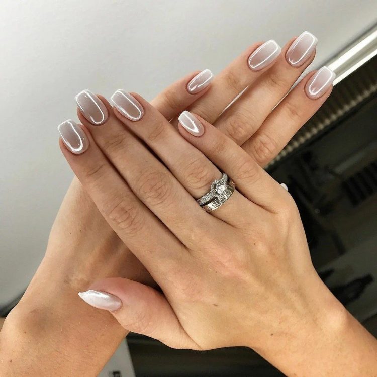 Втирання увійшло в моду нещодавно і побачити такий дизайн можна не так частоно як, наприклад, френч, але у своєму виконанні він зовсім не поступається попереднім варіантам. Така ідея чудово виглядає як на світлих, нюдових відтінках, так і на темніших або яскравіших. Ви можете використовувати втирання на всіх нігтях або зробити акцент тільки на двох пальцях, або на одному, що виглядає непомітно і не буде набридати.