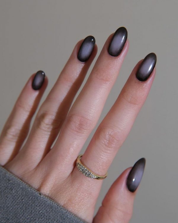 Ще один лаконічний варіант – чорний манікюр із градієнтом. Особливо ефектно виглядають дизайни, в яких темний відтінок поєднується з сірим.