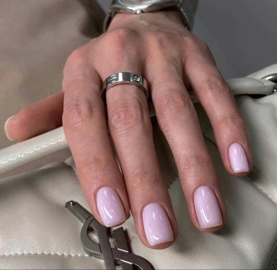 Рожевий – напівпрозоре рожеве покриття не лише надає доглянутого вигляду, але й візуально розгладжує нігтьову пластину, а також робить ручки жінки візуально більш доглянутими + додає образу жіночності.
