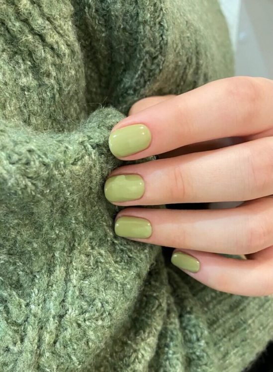 Глянцевий однотонний манікюр у пастельно-зелених відтінках – це величезний вибір відтінків, що обмежуються лише фізичною наявністю того чи іншого кольору у вибраного вами майстра з манікюру.
