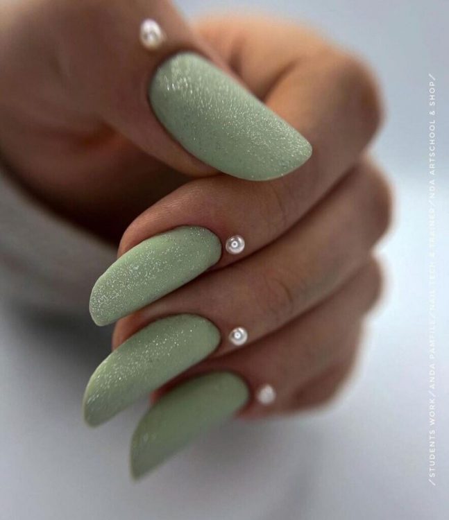 Напрочуд багатогранний зелений колір чудово виглядає в будь-яких відтінках, будь то яскраві зелені або ніжні пастельні, а м’який перламутр у дизайні нігтів – це справжній шик!
