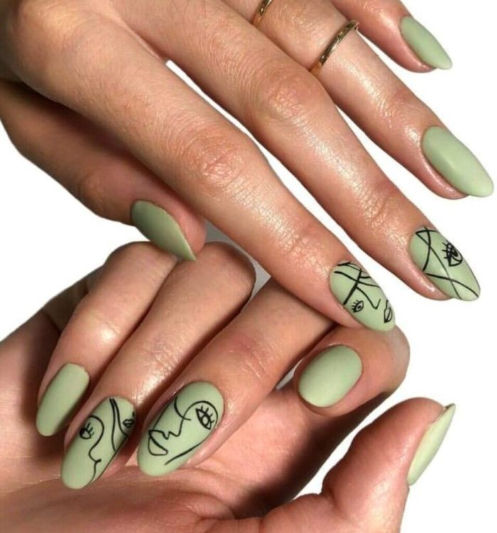 Безумовно, манікюр у пастельних зелених відтінках доповнюватиметься звичним оку рослинним малюнком або орнаментом, таким актуальним у будь-який весняно-літній сезон.