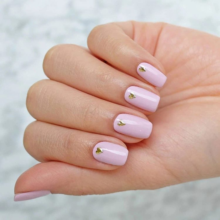 Ще один швидкий та красивий дизайн нігтів перед вами. Щоб його повторити, вам знадобиться рожеве тло та золотий лак для промальовування самого малюнка. Цей варіант манікюру найкраще завершити глянцевим покриттям.