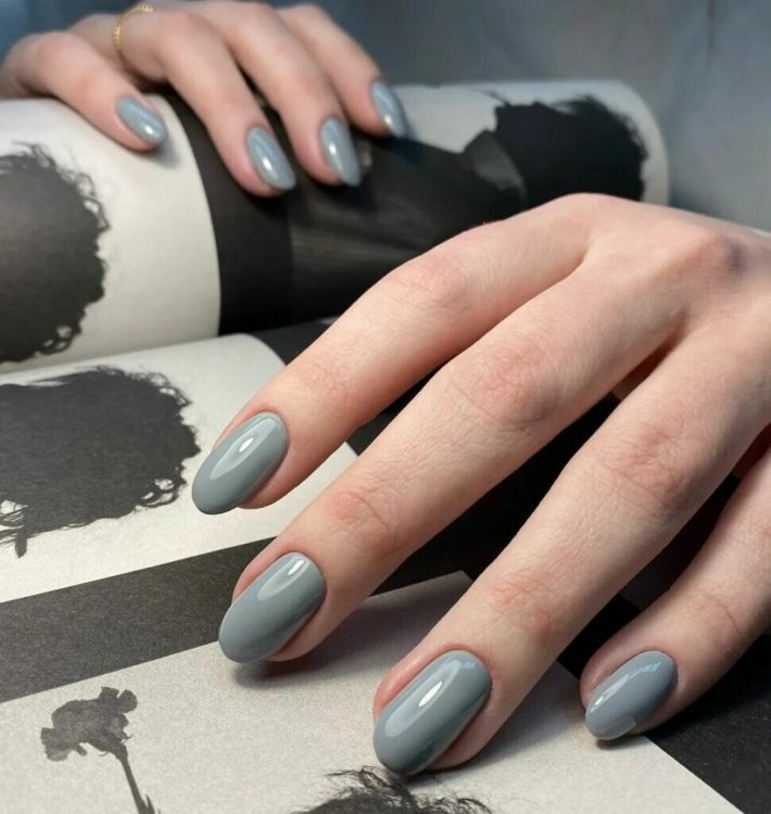 Однотонний манікюр у пастельно-сірому відтінку – найкращий вибір для жінок, які віддають перевагу стильному мінімалізму у всьому.