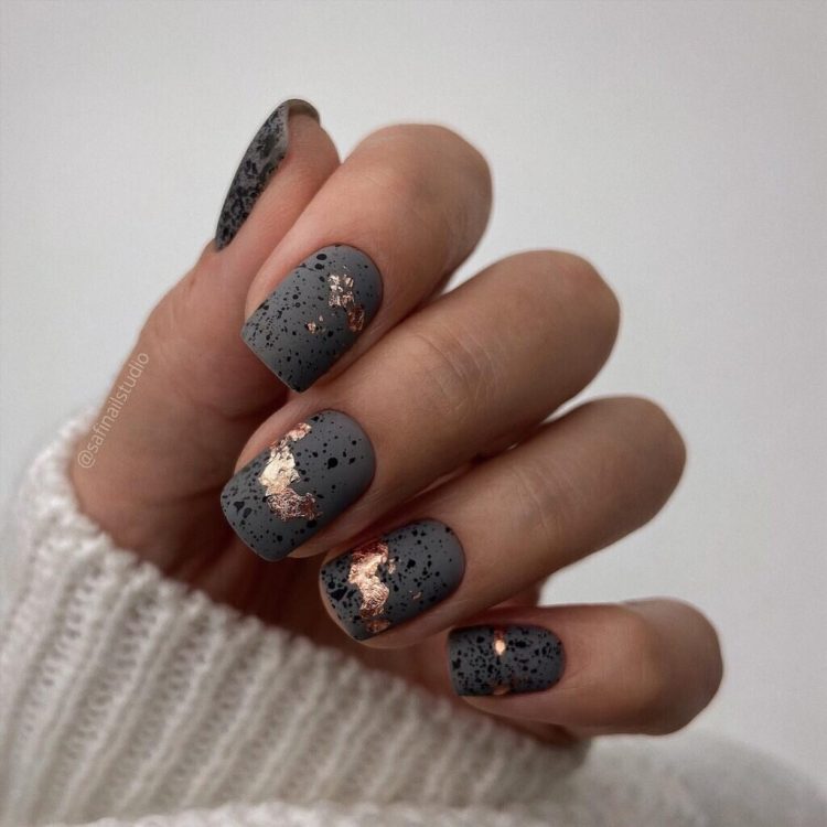 До сірого лаку можна додати і золотистий блиск, що зробить практично будь-який сірий відтінок м’якшим і ніжнішим.