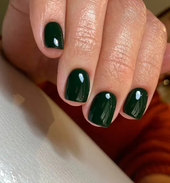 Темно-зелений манікюр на коротких натуральних нігтях