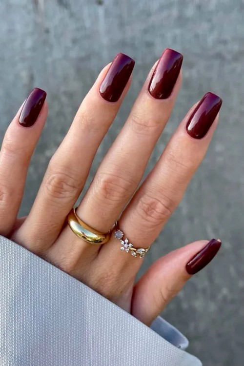 Бордовий манікюр на довгих квадратних нігтях