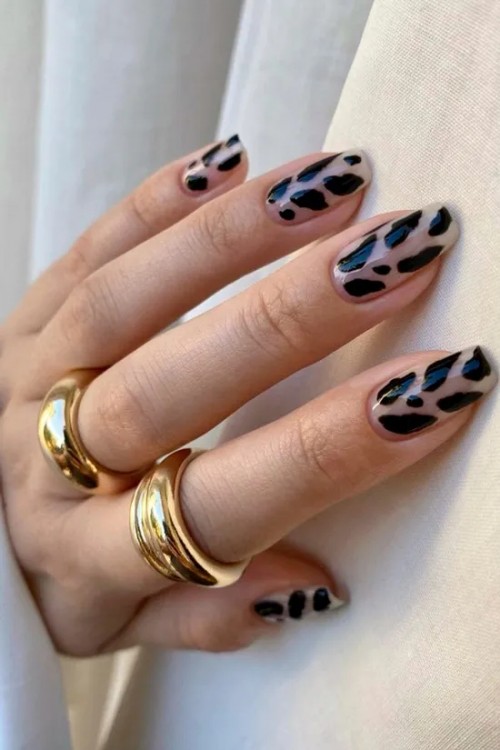 Манікюр із чорним принтом на довгих, натуральних нігтях