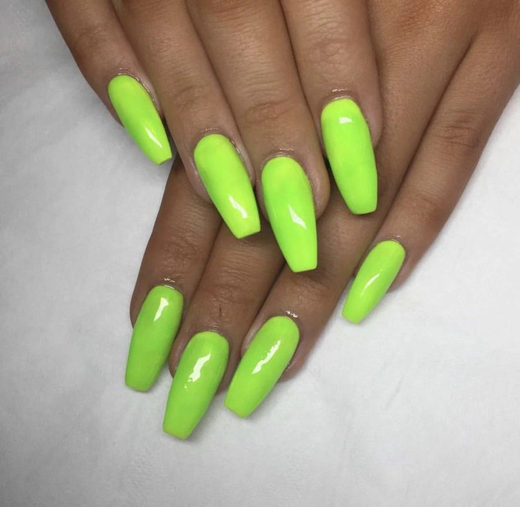 Неоново-зелений колір – чудовий спосіб заявити про себе за допомогою манікюру. Такий соковитий і сміливий відтінок обов’язково приверне до себе увагу. Це ідеальний варіант для любительок яскравих образів. Можна вибрати однотонне покриття або поекспериментувати з різними візерунками та принтами.