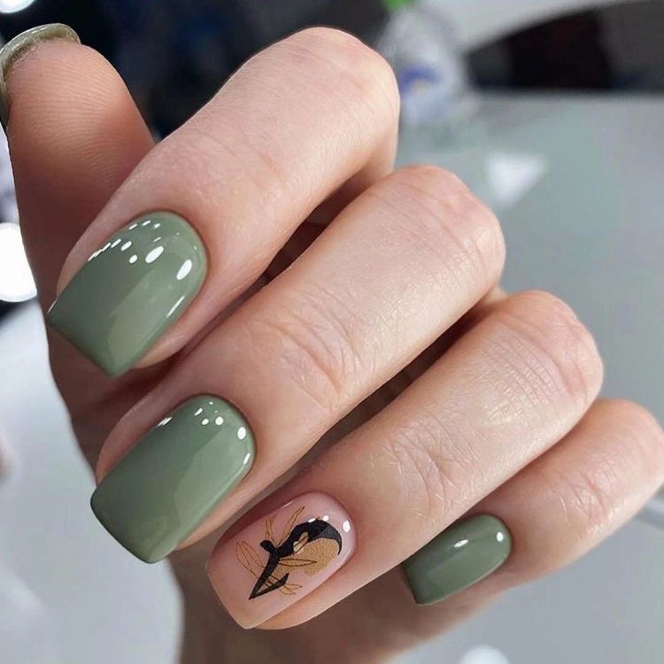 Оливковий дизайн нігтів чудово підходить для жінок різного віку і напрочуд універсальний. Цей жовтувато-зелений колір гармонійно поєднується з більшістю відтінків. Такий манікюр можна доповнити блискітками, які зроблять його жіночнішим, або матовим фінішем, щоб надати покриттю цікавого текстурованого вигляду. Знайдіть образ, який найбільше відповідатиме вашому характеру.