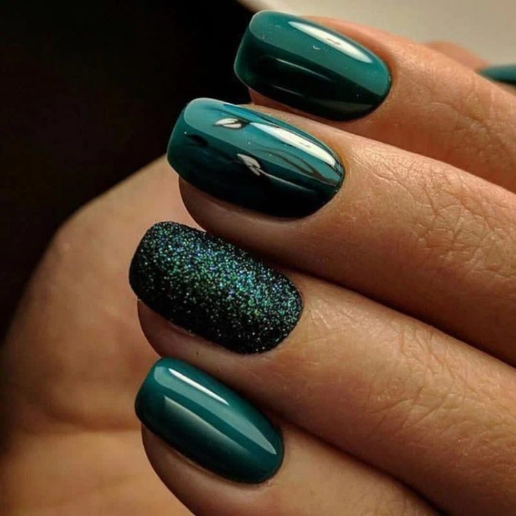 З усіх відтінків зеленого, які ви можете вибрати, смарагдовий, безперечно, є найдорожчим і найрозкішнішим. Він чудово виглядає на довгих нігтях і може поєднуватись одразу з декількома іншими кольорами для створення захоплюючого нейл-арту. Нейтральні кольори, такі як бежевий, приглушать зелений колір, а фіолетовий та червоний зроблять його більш інтенсивним та контрастним. Тим не менше, безумовно, найпопулярніше поєднання – це смарагдово-зелений та золотий. Воно здатне надати вишуканості та витонченості будь-якому образу.